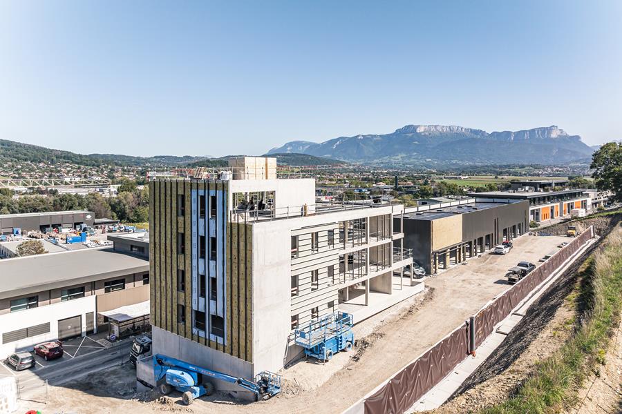 Ce moment convivial fut aussi l’occasion de remercier l’ensemble des entreprises intervenantes pour leur engagement et la qualité du travail accompli sur cette première phase du Pyrite : GIBELLO pour le gros œuvre, Constructions R. Delucingepour la charpente métallique, Tissot Étanchéité 74 – Groupe Face pour le bardage, l’étanchéité et la couverture, ainsi que Mithieux TP et Ceccon BTP – Annecy pour les terrassements et réseaux.