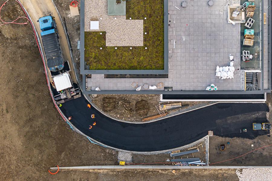 Au total, 2 500 m² de voirie sont prévus. Certaines zones accueilleront les poids lourds, d’autres seront dédiées aux véhicules légers, avec des structures de chaussée adaptées à chaque usage.