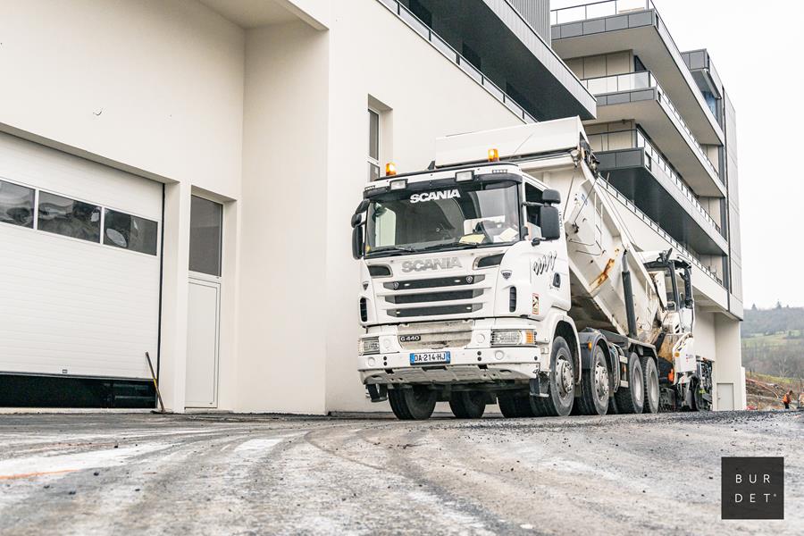 Quand la logistique rencontre le béton, le chantier prend tout son sens. Sur le Pyrite, après des mois de gros œuvre, les équipes Burdet passent maintenant à la phase des aménagements extérieurs, là où chaque mètre carré compte et chaque couche de béton a son rôle.